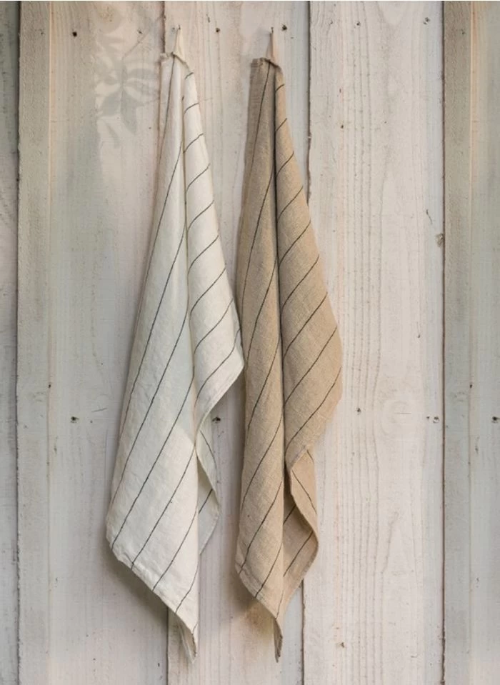 Gestreepte theedoek van stonewashed linnen by Harmony Haomy.