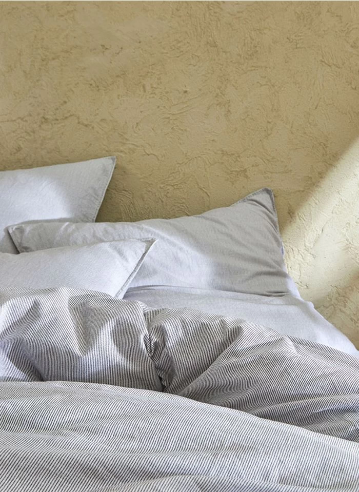 Gestreepte dekbedovertrek – biologische linnen/katoenblend by Doransou.